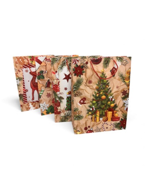 Bolsa de regalo tamaño grande 30x41x12cm. Valor por docena, en donde contiene 4 modelos diferentes