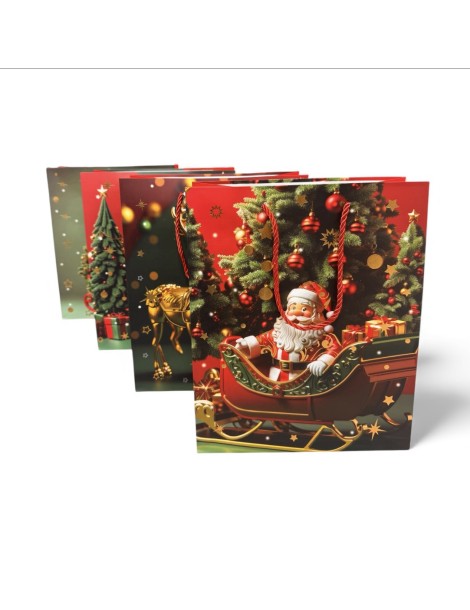 Bolsa de navidad tamaño pequeño 18x23x10cm. En su interior contiene 4 modelos diferentes. Valor por Docena
