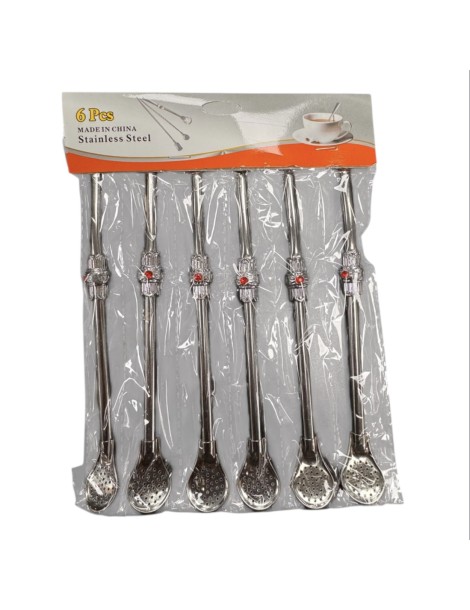 Bombilla con diseño, 6 unidades de acero inoxidable. 17 cm de largo