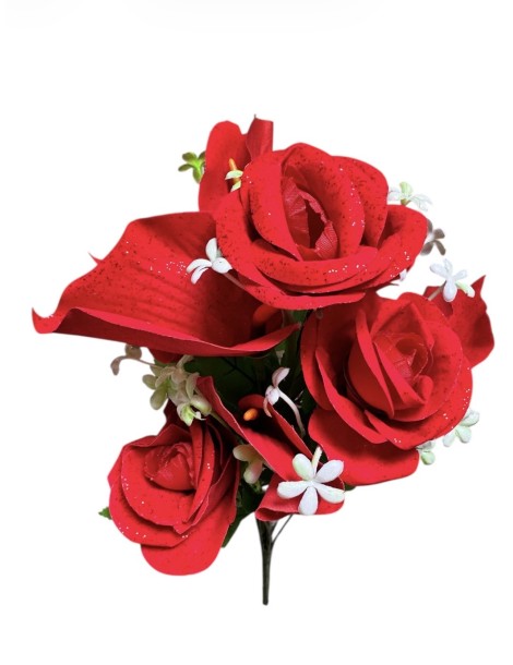 Ramo de rosas con cala con 10 cabezas. Una altura de 48,5cm y de ancho 30cm