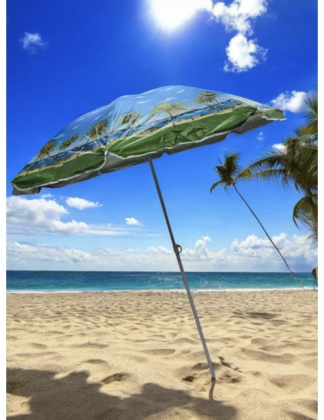 Este quitasol cuenta con una tela que ofrece protección UPF+40, ideal para protegerte de los rayos UV. Sus medidas son 1,80x1,70cm, proporcionando una amplia zona de sombra