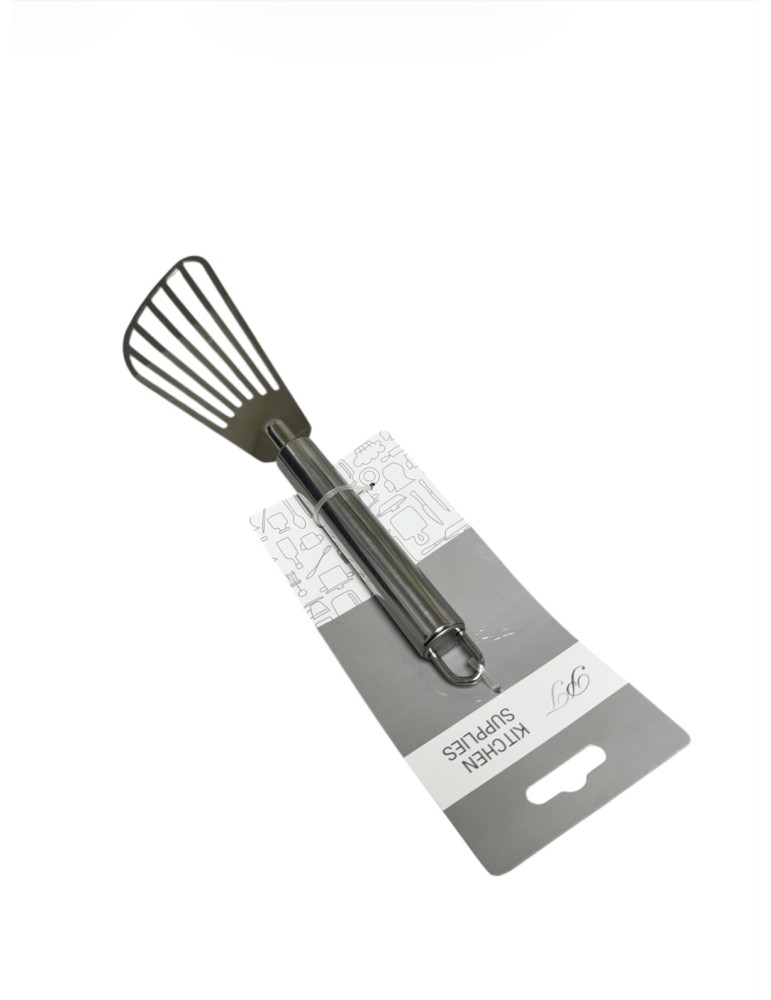 Entre los productos, Kitchen supplies se encuentra la espátula para pescados y verduras. Su hoja finamente diseñada para pescados y verduras permite maniobrar con precisión, asegurando que cada porción se cocine a la perfección. Es el aliado perfecto para tus creaciones culinarias más delicadas. Destaca por su gran durabilidad, debido a que está elaborada con materias primas de alta calidad. .