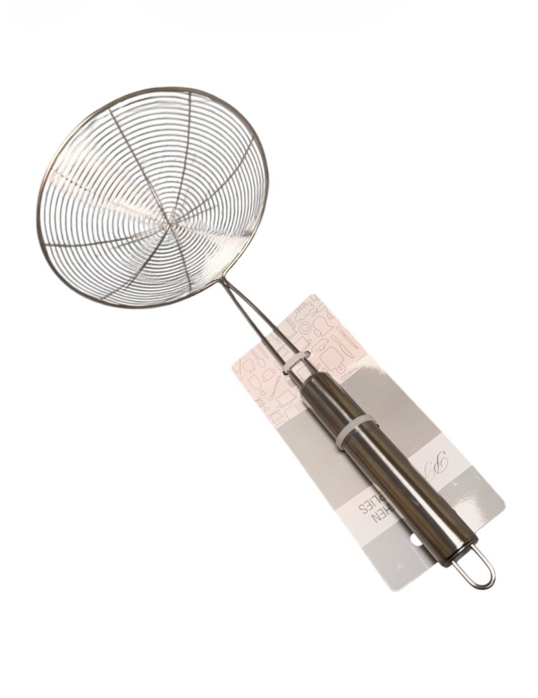 Su diseño plateado y su material resistente la convierten en el complemento perfecto para tus preparaciones. Con su forma práctica, podrás retirar alimentos de forma fácil y segura.